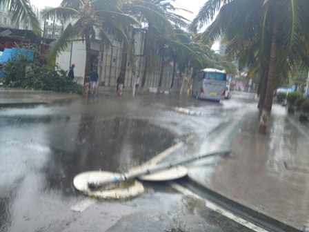 я с семейством сейчас в Санье.. да, тайфун сильный был, я такого еще не видела, настоящий тропический ураган.. много поваленных деревьев, было страшно.. сейчас море уже успокоилось, только в ДДХ грязновато стало, и на пляже много мусора прибывает с моря..