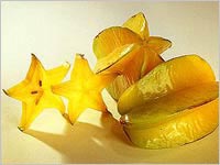 Плоды карамболы желтого цвета, от 5 до 12 см длиной. В поперечном разрезе имеет форму пятиконечной звезды. Карамбола — хрустящий, кисло-сладкий фрукт, на вкус это что-то среднее между яблоком, апельсином и виноградом. Кожица у карамболы тонкая, блестящая, полупрозрачная, сквозь которую видна светло-желтая или желтовато-зеленая (при созревании соломенно-золотистая) мякоть. Карамболу употребляют в свежем виде.