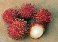 Рамбутан иногда еще называют волосатым фруктом. Плоды овальные, иногда почти шаровидные, 3-4,5 см в диаметре. Упругая кожура желтого или красного цвета покрыта волосками длиной 4 - 5 см. Растут гроздьями (до 30 шт.). При покупке рамбутанов обращайте внимание, чтобы плоды были насыщенного красного цвета, а кончики «волос» — зеленоватые. Рамбутан плохо хранится, в холодильнике его можно держать не более недели. В пищу употребляются находящиеся внутри плода кисло-сладкие на вкус прозрачно-белые студенистые покровы семян. Для того чтобы очистить фрукт, разрежьте его посередине вдоль с помощью ножа, и мякоть свободно отделится от кожицы. Косточку, которая обычно сильно врастает в мякоть, можно вырезать круговым движением ножа.