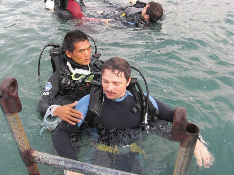 Оборудование вполне приличное и качественное (сравниваю с тем, что видела у знакомых дайверов). Погружение самое глубокое было, по словам инструктора, 8 метров (может и соврал, чтоб приятно было %) ).