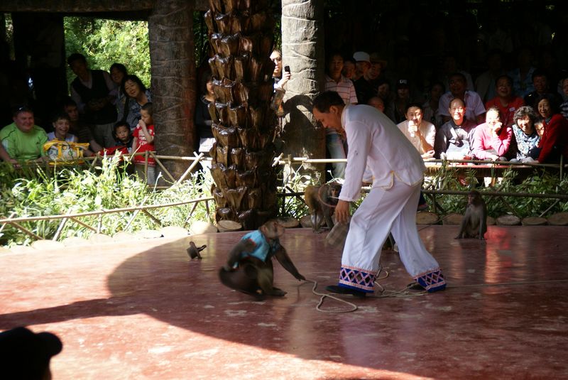 Экскурсия на целый день. Добраться до острова можно на катере или по канатной (около 15 минут) дороге: она перекинута через пролив. Из кабины фуникулёра с высоты птичьего полета вы сможете увидеть пролив, открытое море, уникальное поселение «морского народа». Кроме знакомства с дикими обезьянами можно посмотреть обезьяний цирк, сфотографироваться с дрессированными обезьянками, а на обратном пути при желании отведать морских деликатесов в ресторанчике «на воде», отведать блюда из свежих морепродуктов. Добраться до него можно на моторной лодке. А также увидеть парк орхидей, где представлены редкие виды растений, многие из которых используются в традиционной китайской медицине.