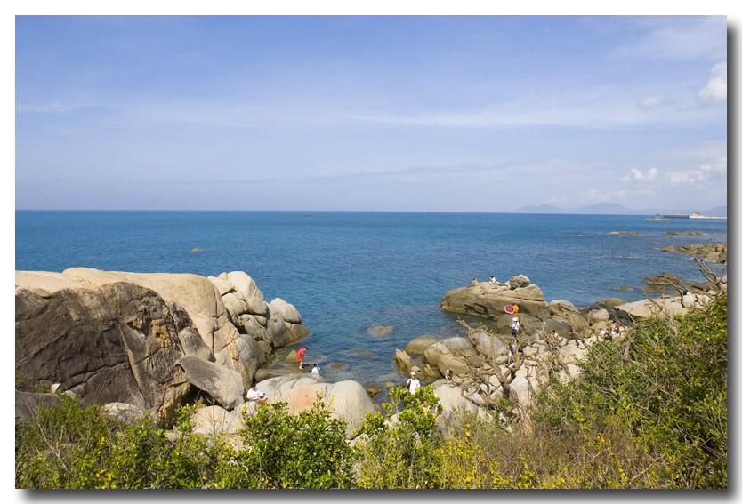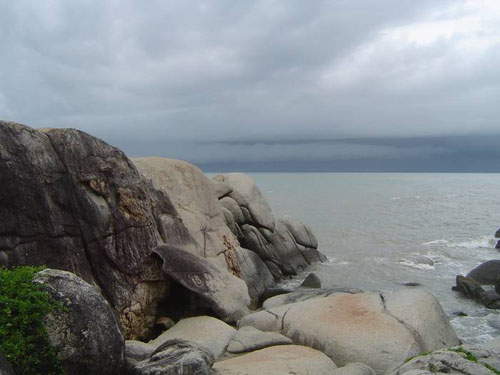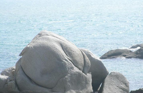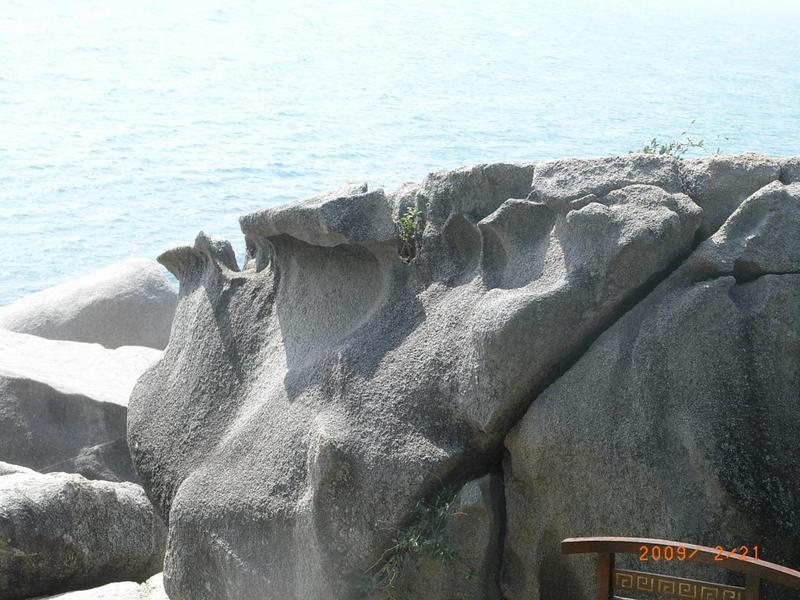 весь берег и склоны горы усеяны причудливыми скалами, многие кажутся выточенными рукой искусного ремесленника, но на самом деле-чисто природные явления. согласно древним китайским представлениям, место,где встречаются горы и море, удивительный источник вдохновения. не случайно в любом живописном месте вы обнаружите высеченные, нарисованные или изображенные любым другим способом на камнях изречения. афоризмы, стихотворения.