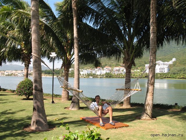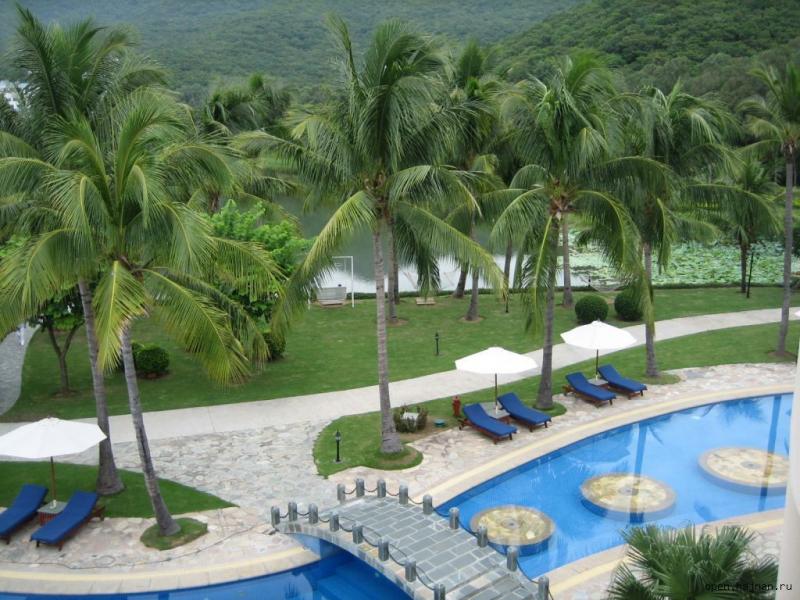 Утром нам оперативно поменяли номер без нашего участия (ведь мы уже, по рекомендации менеджера, - отдыхали). Причем, по сравнению с первыми двумя он был просто роскошный и с прекрасным видом. Настроение кардинально поменялось.Что касается отеля. Он нам очень понравился. По китайским меркам он просто роскошный. Большая, зеленая, ухоженная территория. Живописное озеро, вдоль которого сплошная чистота и ухоженность. Здесь же у отеля можно порыбачить - снасти и на что ловить выдают. Рыбалка очень интересная. Рыба ловится всякая и большая и маленькая, которую потом Вам и сготовят. Приветливый и отзывчивый персонал, иногда говорящий на английском. Невооруженным глазом было заметно, что китайцы очень стараются создать хорошую атмосферу отдыха. Отличительна черта отелей на Хайнане - они не имеют загороженной территории. То есть, любой чужой может ходить, гулять по различным отелям. Что мы и делали с целью познания. Брали в аренду велосипед и организовывали себе экскурсию по отелям. Можно сказать уверенно, что китайские 5* - понятие относительное и можно не получить ожидаемый пятизвездочный отдых. А нам просто повезло - мы получили то, что и ожидали. Наверное, потому, что избороздили весь Интернет перед поездкой.В решении возникающих проблем помогали китайские гиды, которые практически целый день сидели в холле отеля. Без них была бы катастрофа. Отдельное спасибо гиду Ване. Вообще его зовут Ван. Помогал по всем вопросам.