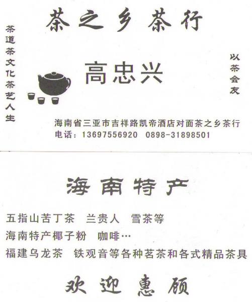 Приехав в Китай - как уехать без чая. Но…Чай купили, можно сказать, случайно. Расстроившись ценниками повсеместно по Санье, уже отчаялись совершить покупку. Пошли бродить по городу. Рассказываю маршрут, так как дешевле, чем у этого парня, неоднократно сравнив с другими магазинами ничего не нашли. Может и есть где государственные магазины этого чая, но ни на форуме, ни сами их не встретили. Чуть - чуть наличествует в отделах продуктовых магазинов универмагов в виде пакетиков с цветками жасмина , малого количества сортов чая, а так нет.