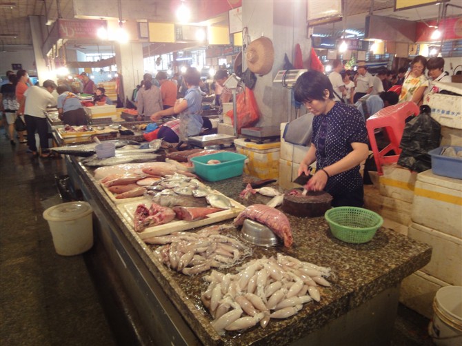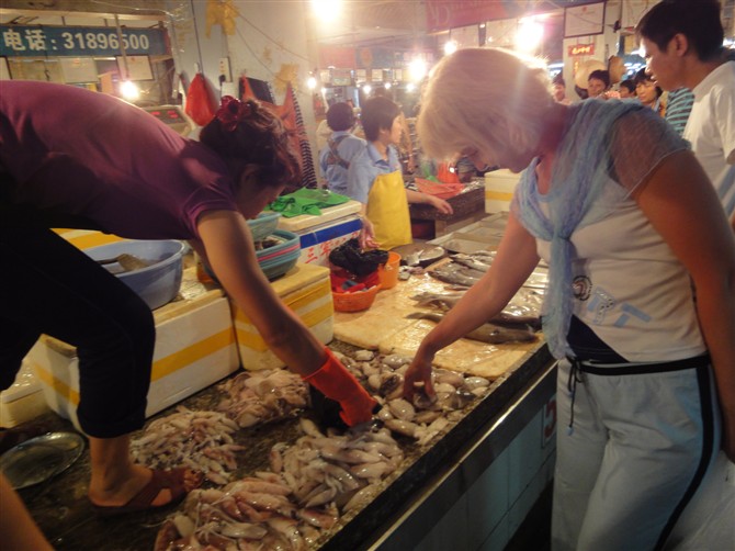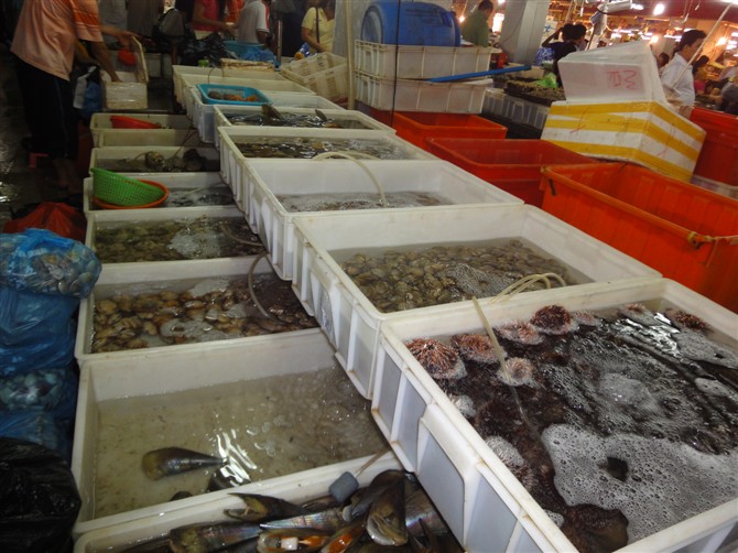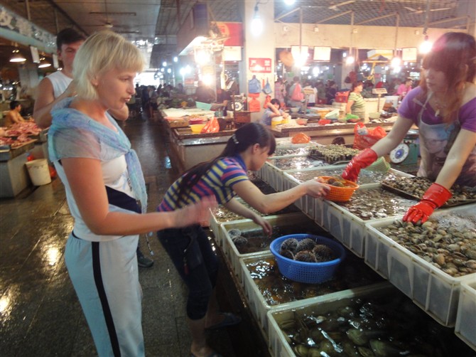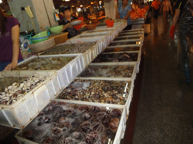 Это новый вариант ресторана в Саньи ! вы может покупать морепродукты на рынок или вы сами поймали! вы можете принести туда ! они помогают вам готовить ! 10 ю за кг готовить ! вы тоже можете туда покупать ! но не советую. рядом этой площади есть много ресторанов морепродуктов,помогать вам готовить морепродукты. в этим рестораном вы можете со своим напитком